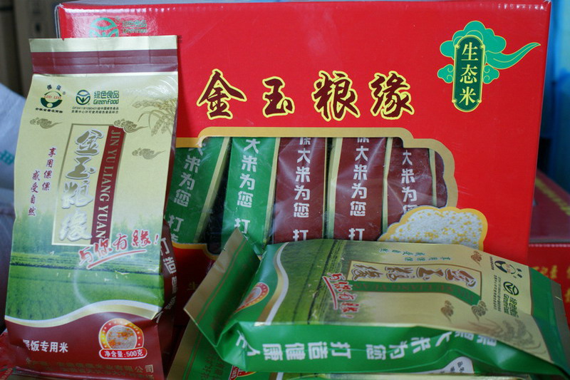 “金玉粮缘”配方米采用绿色食品生产基地——大圹圩农场原生态软玉大米作为原料,配以长白山原生态米,经科学研制加工而成,富含硒等多种营养元素,具有品质优良、口感滑软、营养丰富、清香馥郁的特点,是平衡膳食、搭配营养、居家馈赠的至佳食品。配方米除延续了倮倮大米的优良品质之外,包装设计也打破常规、匠心独运,内置锡纸袋小包装精美、立体、富有质感,外壳大包装映衬着原产地背景——大圹圩农场优美的自然风光,让消费者第一眼就能感受到绿色与生态。