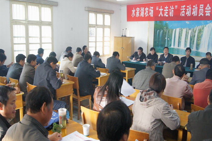 为进一步增强做好新形势下群众工作的责任感、自觉性和主动性,深入贯彻胡锦涛总书记“七一”讲话精神和党的十七届六中全会、省第九次党代会精神,确保“五级书记带头大走访”活动取得实效,11月10日,水家湖农场党委召开“三级班子带头大走访”活动动员会。农场党委成员以及各基层党支部书记、工会主席、机关中层干部参加了会议。