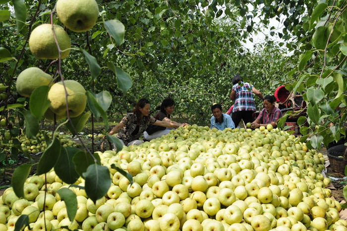 金色的十月,砀山果园场随着今年酥梨采销工作进入尾声,职工们格外繁忙,一边加紧清收树上余果,一边赶忙送往场里统一销售。