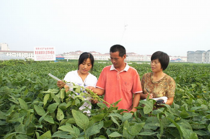 图为:龙亢农场农业科技人员在建立大豆科研实验田间档案