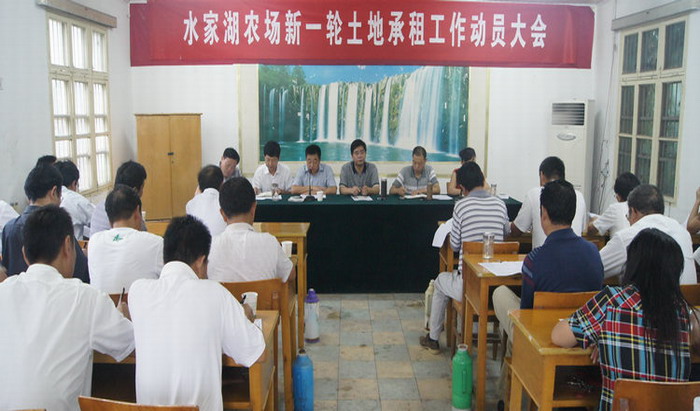 今年秋季,水家湖农场面临职工土地承租合同到期。8月初以来,该场按照企业制度和规定程序,在确保农场和职工稳定前提下,规范有序开展新一轮土地承租工作。农场坚持民主决策、科学决策、集体决策的原则,成立相应组织,制定工作方案,场领导分片带队包点,深入各农业分场组织召开不同层次的座谈会,听民声、问民计、寻良策,并根据职工的合理化建议修改完善了新一轮土地承租实施方案。