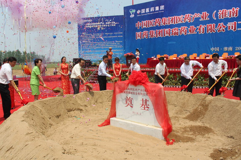 中国建材集团董事长、党委书记、中国医药集团董事长宋志平,淮南市委书记杨振超出席仪式并讲话。安徽省食品药品监督管理局局长刘自林、副局长宣庆生,安徽农垦集团总经理李卓民,国药控股股份有限公司执行董事、总裁、党委书记魏玉林,国药集团药业股份有限公司党委书记、总经理陈长清,中国建材股份有限公司副总裁李谊民,中国建材报社长陈才来,淮南市人大常委会副主任王玉成、市政协副主席苏静,安徽农垦集团办公室主任、淮南垦投公司总经理姜三豹等参加了开工奠基仪式。