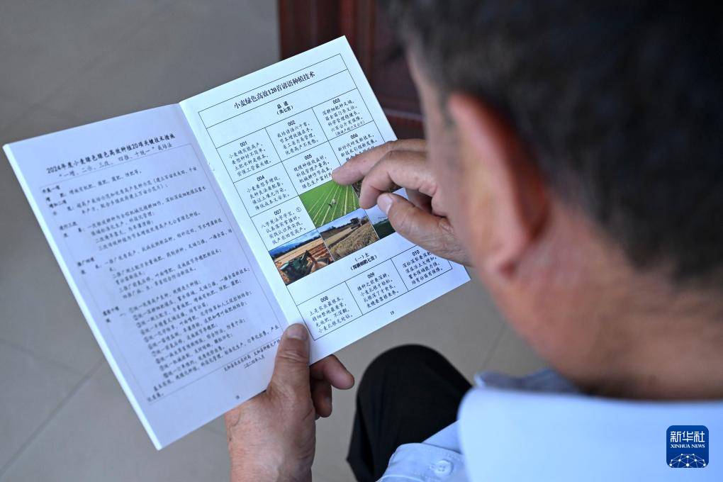7月20日,徐淙祥在家中翻看他编写的小麦种植顺口溜。