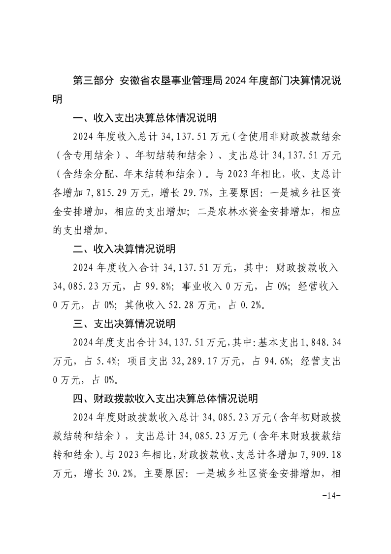 下载链接:安徽省农垦事业管理局2024年度部门决算.pdf