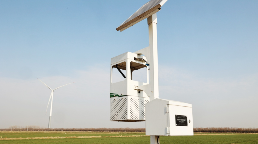 科技已融入生产各个环节。为进一步做到绿色种植,在农田的周围,每隔几步就是一台风吸式杀虫灯,它们利用太阳能板供电,利用光波引诱害虫成虫扑灯,然后风机转动产生气流将虫子吸入到收集器中,使之风干、脱水,达到杀虫的目的。此举大大减少了杀虫剂的用量,降低企业成本的同时,也保护了环境。