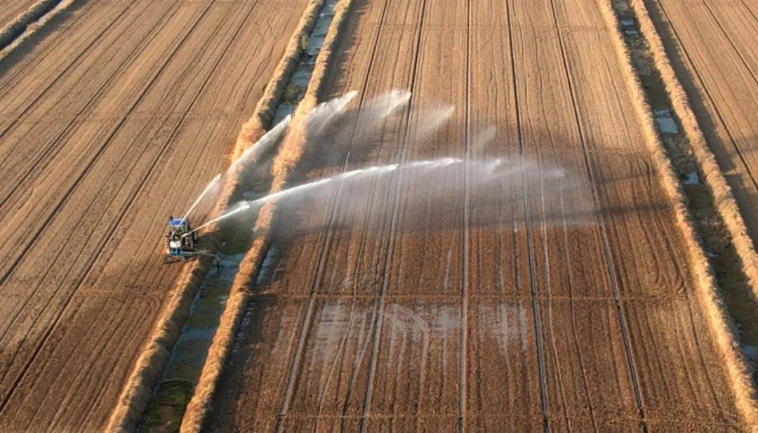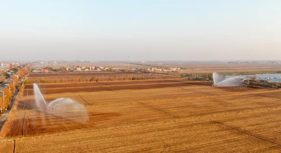 华阳河农场针对部分晚稻茬小麦土壤墒情不足的情况,迅速组织喷灌抗旱,实施精准补水,确保稻茬麦齐苗越冬。(李龙)