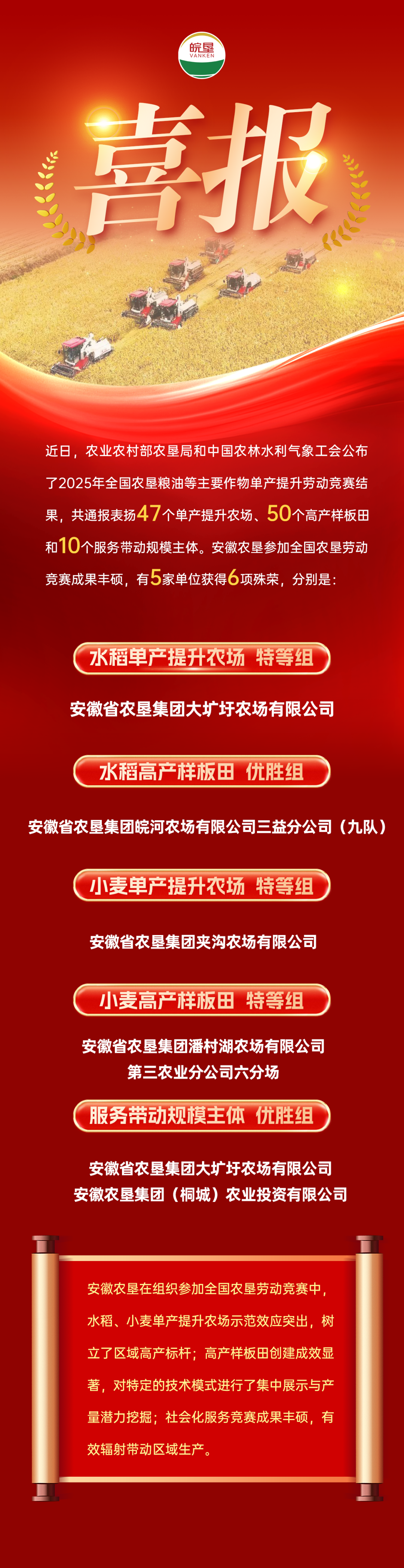 喜报丨安徽农垦这5家单位获全国农垦粮油单产竞赛6项殊荣